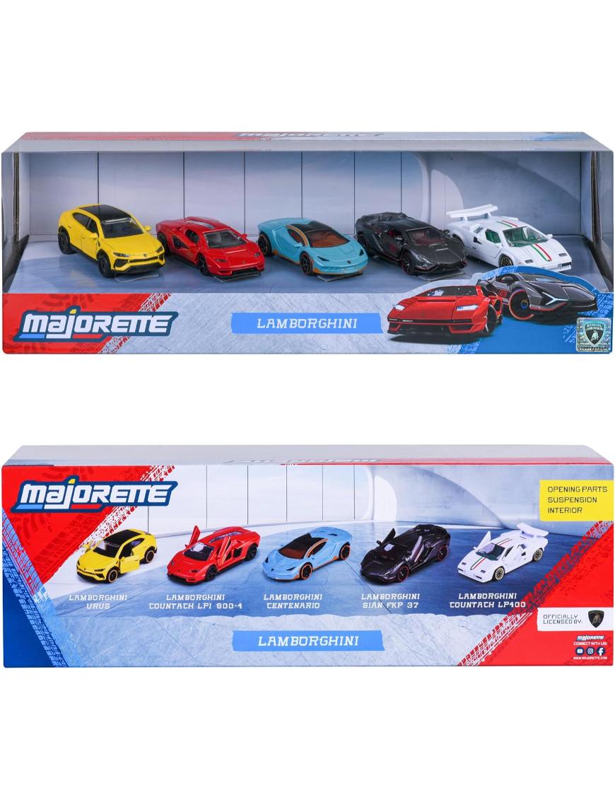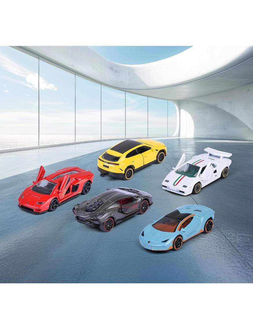 ¡La élite de los superdeportivos llega directo a tu casa! Este set incluye 5 modelos Lamborghini icónicos, fabricados en metal de alta calidad y con detalles realistas que enamoran: partes que se abren, ruedas libres para máxima velocidad y un diseño que destaca por su estilo y adrenalina. Cada auto mide 7,5 cm, ideal para manos pequeñas y también para exhibir en la colección de cualquier fanático. Modelos incluidos: Sián FKP 37 (gris), Urus (amarillo), Centenario (azul), Countach LP400 (blanco), LPI 800-4 (rojo). Este gift set oficial de Lamborghini es el regalo perfecto para niños desde 3 años y para coleccionistas que buscan piezas únicas y llamativas.