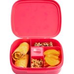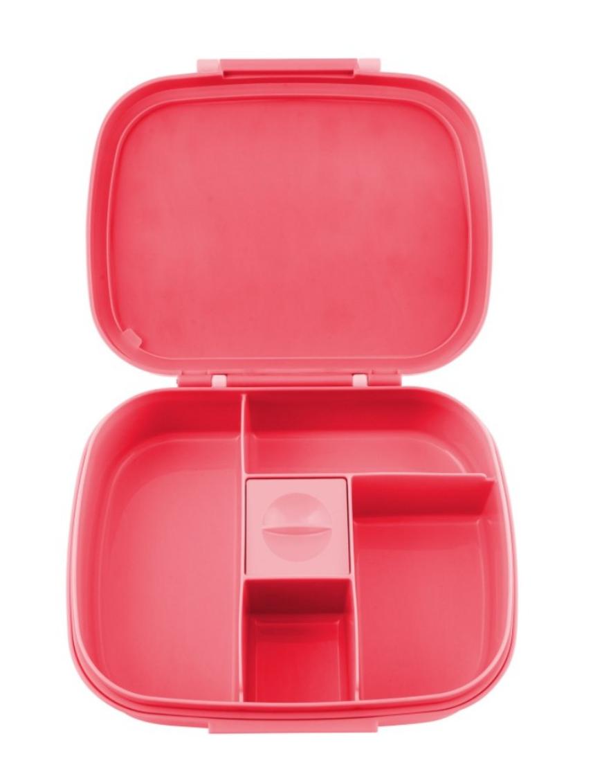 ¡Prepara a tu pequeño para la escuela con nuestra Bento Box con bandeja extraÃble! Los cinco compartimentos permiten porciones perfectas de comida, mientras que el sello hermético de la tapa mantiene la comida fresca. Además, el compartimento para salsas con tapa a prueba de fugas agrega comodidad. ¡Con diseños adorables, la hora del almuerzo se volvió un poco más divertida! Aproximadamente 21 cm x 18 cm x 5,7 cm