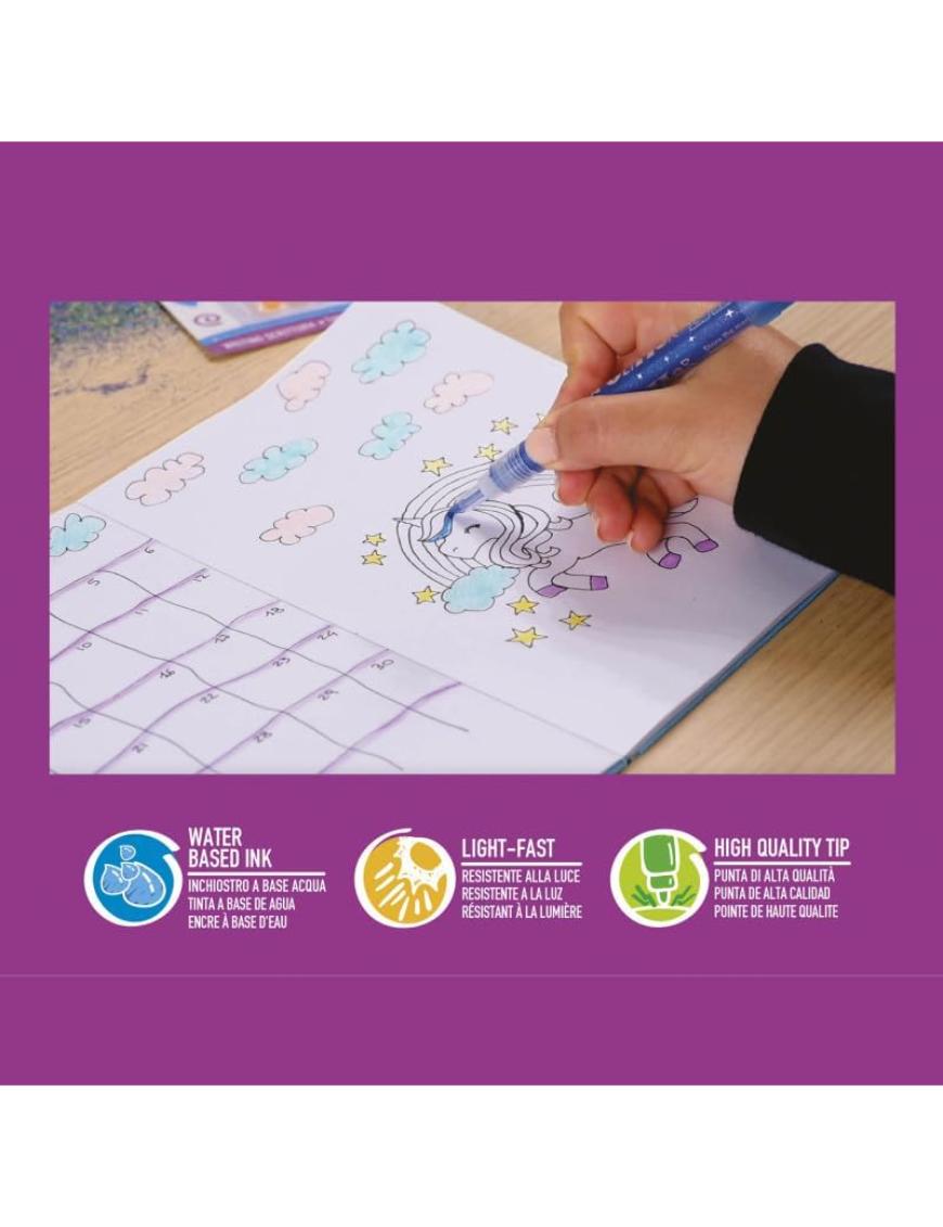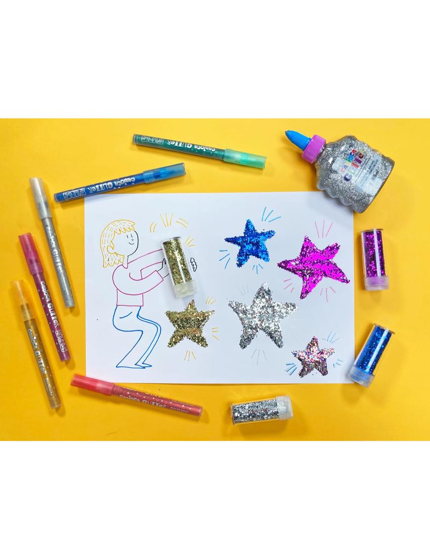 Los marcadores Carioca Glitter están pensados para destacar detalles y transformar cada dibujo en algo especial, lleno de luz y personalidad. Ideales para ilustrar, escribir, resaltar y darle un acabado brillante a tarjetas, cuadernos o proyectos creativos.