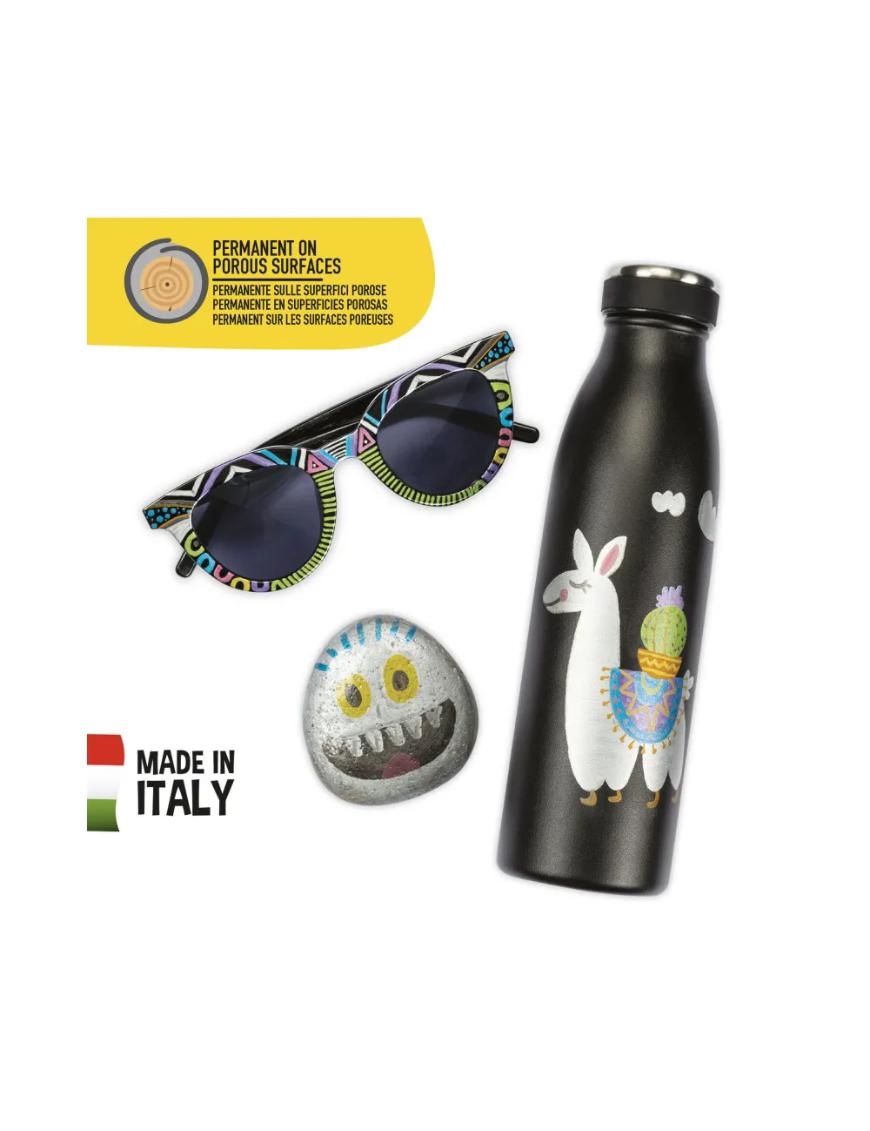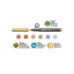 Marcadores metálicos de alto impacto visual, ideales para personalizar objetos y crear sobre superficies oscuras. Perfectos para intervenir botellas, vasos y proyectos creativos, estos marcadores invitan a jugar con el brillo y la expresión personal.