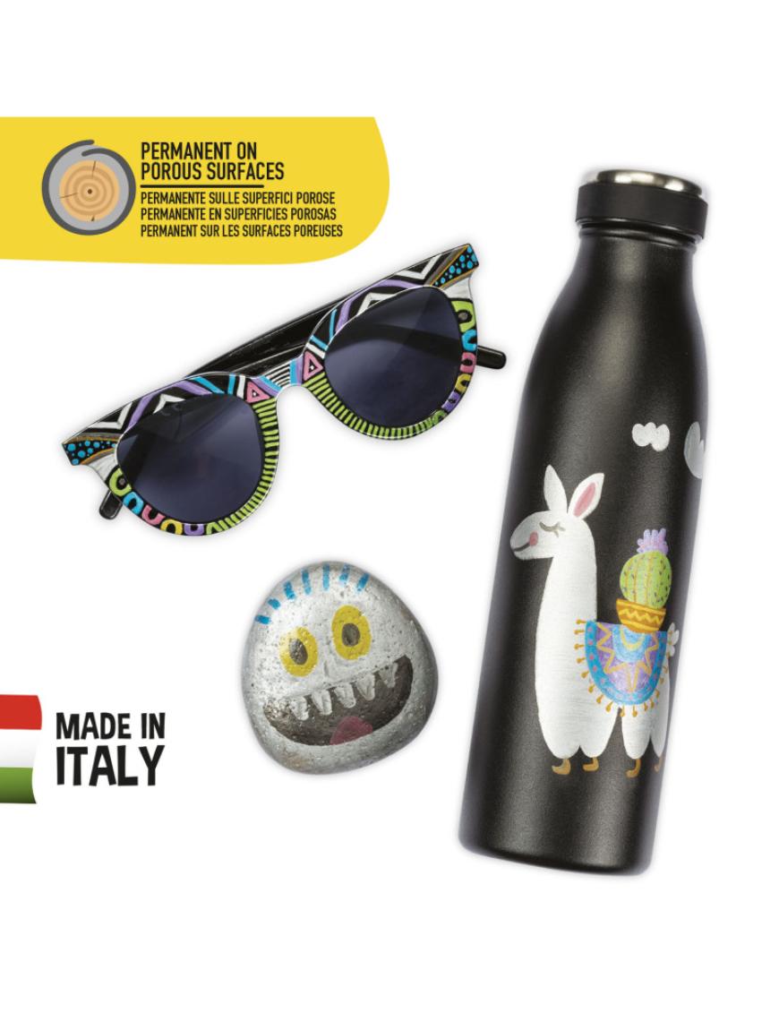 Ideal para superficies oscuras. Colores permanentes en superficies porosas y removibles en lisas. FÃjelo con un spray acrÃlico para un efecto más duradero. Perfecto para personalizar sus artÃculos como botellas de agua y vasos. Tinta a base de agua y punta bloqueada.