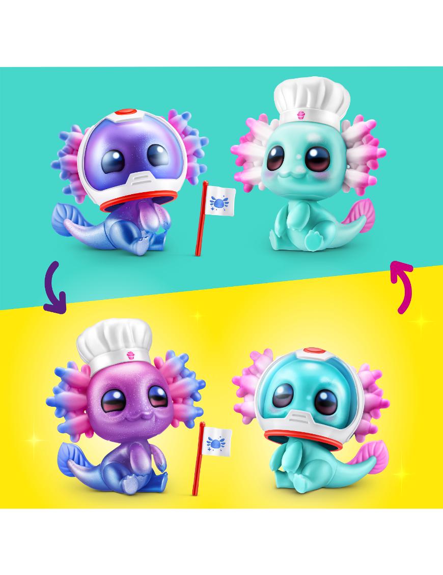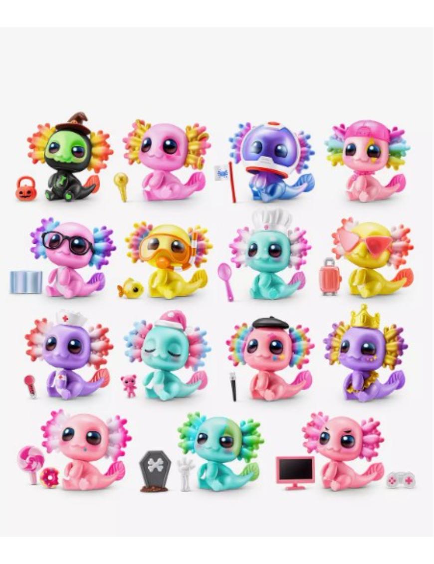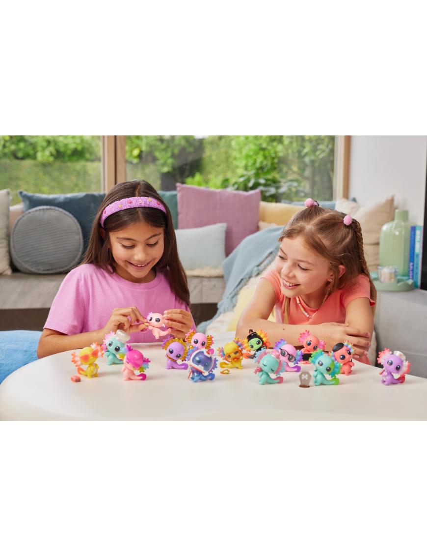Abre la cápsula sorpresa, quita las capas y revela uno de los 15 ajolotes únicos, como Dance-A-Lotl, Read-A-Lotl o Snacks-A-Lotl, cada uno con un estilo propio y accesorios súper divertidos. Incluye una figura temática, 2 accesorios, arena moldeable, una calcomanÃa y una guÃa de colección. ¿Te tocará el ultra raro Astrolotl? Mezcla y combina sus accesorios para crear combinaciones originales y jugar sin parar.