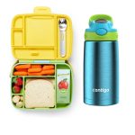 Combo escolar que incluye botella Contigo y lonchera bento Munchkin.