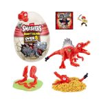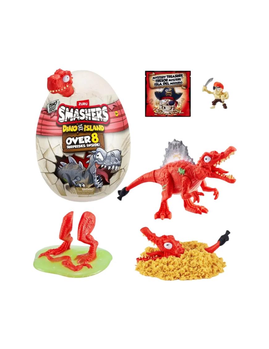 ¡ROMPE el huevo en pedazos para descubrir las 10 sorpresas ocultas dentro de este huevo lleno de acción! ¡Busca a través de la arena blanda y la baba súper elástica tus piezas de Dino! ¿Encontrarás al poderoso T-Rex, al temible Spinosaurus o al sigiloso Stegosaurus? ¡Qué estás esperando! ¡Ponte a prueba para descubrir tu nuevo y peligrosamente épico Smashers Dino!