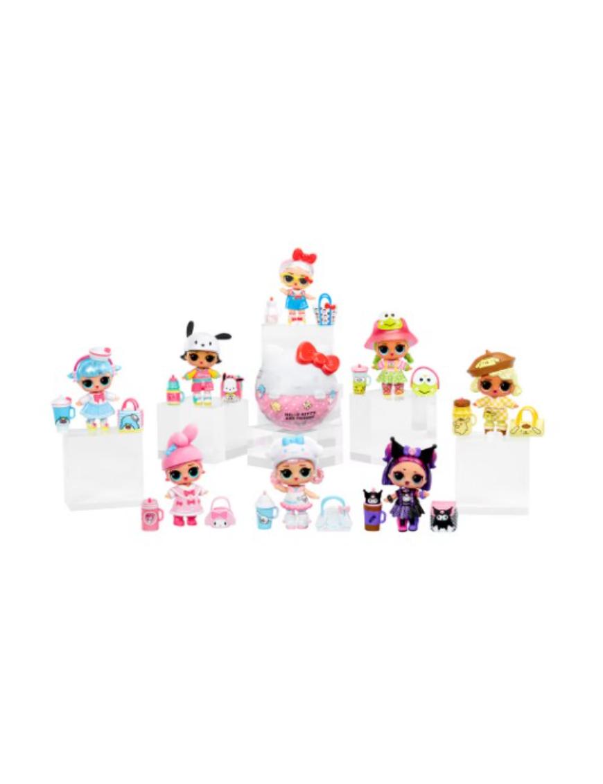 Haz nuevos amigos con los nuevos LOL Surprise, inspirados en Hello Kitty y sus amigos, incluyendo a: Hello Kitty, Cinnamoroll, Pochacco, Keroppi, My Melody, Pompompurin, Kuromi y Tuxedosam.
