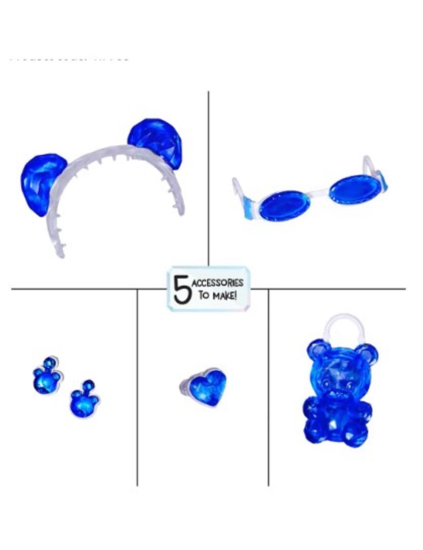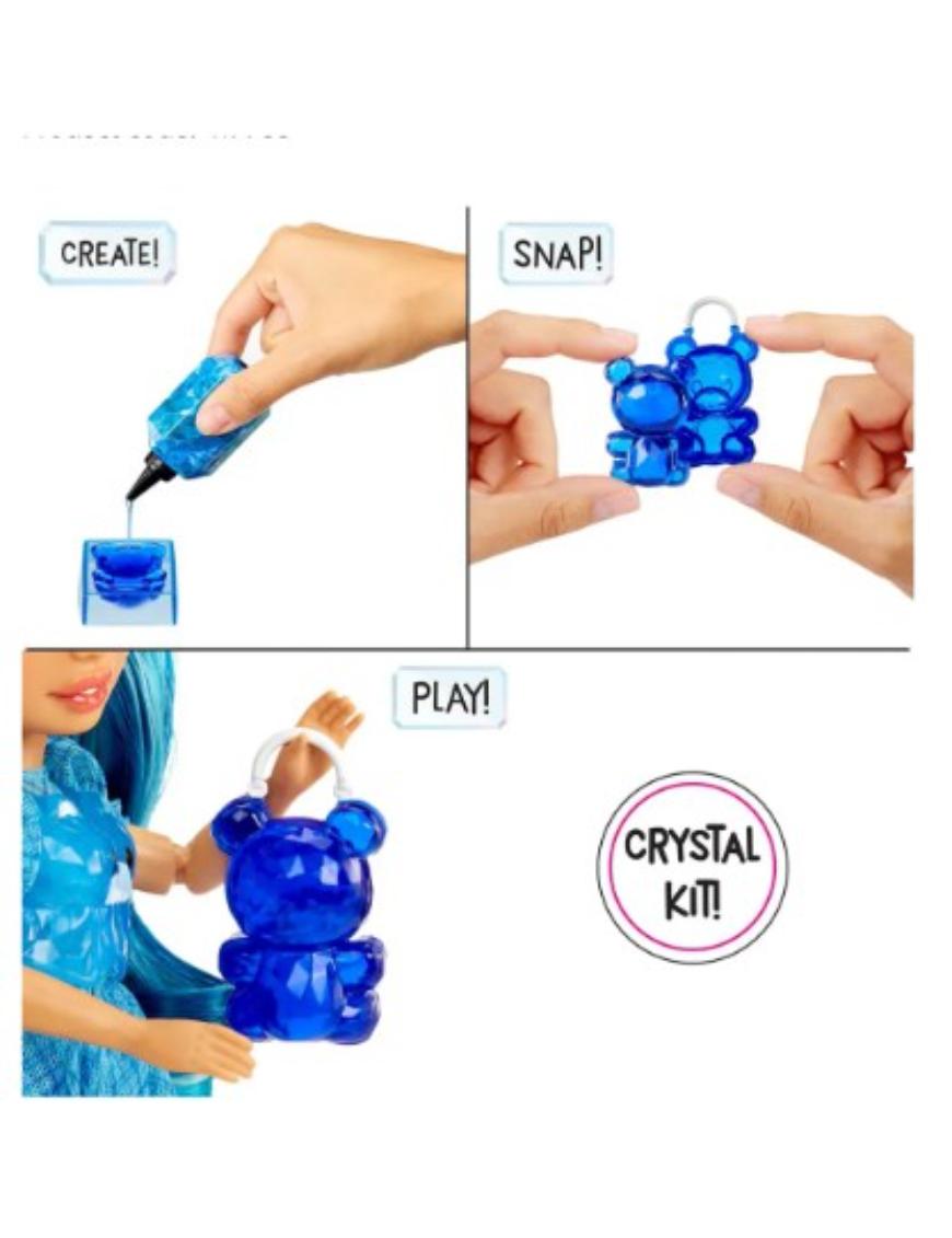 ¡Creá accesorios únicos con Rainbow High Crystal Accessory Make It Kit! Incluye todo lo necesario para hacer 5 accesorios de cristal: lentes, aros, cartera, vincha para tu muñeca y un anillo para vos. Verté la resina, dejá que se endurezca al sol, desmoldá y armá. La muñeca articulada viene vestida con estilo, tiene cabello largo, pestañas reales y ojos de cristal.