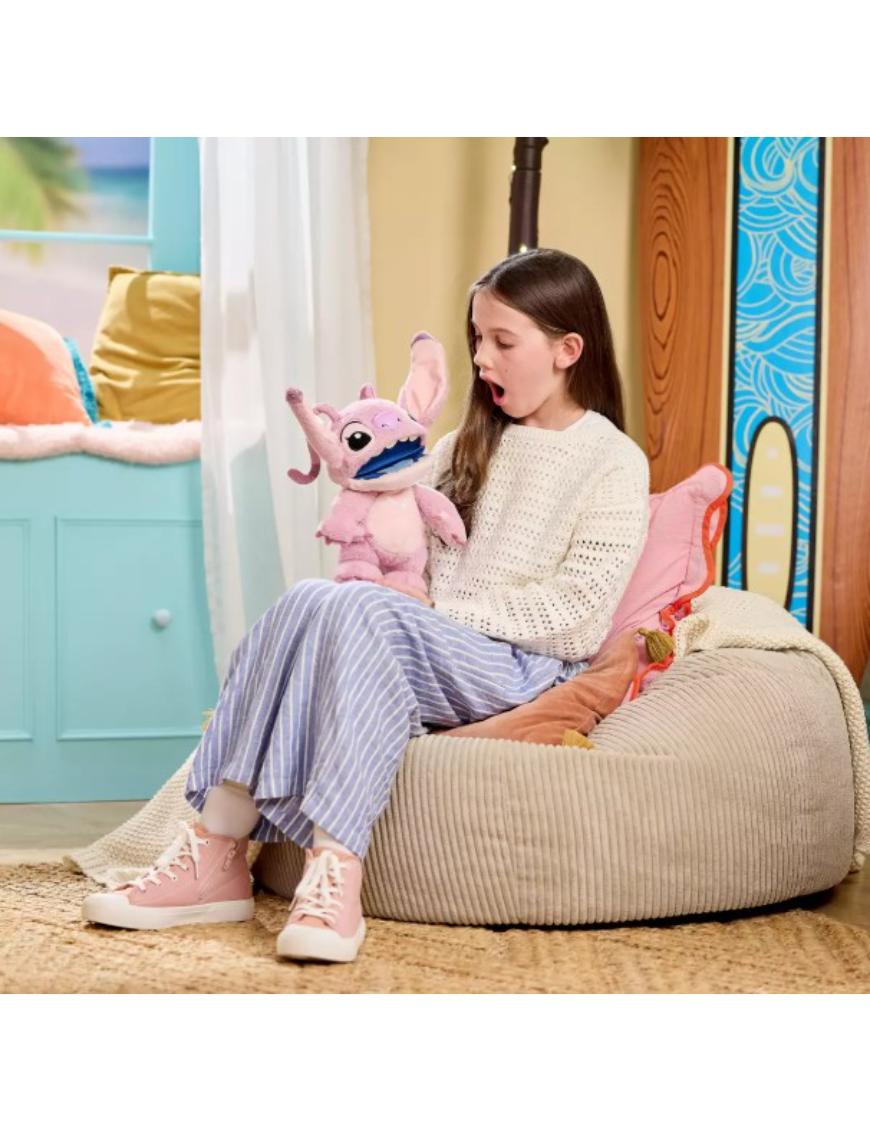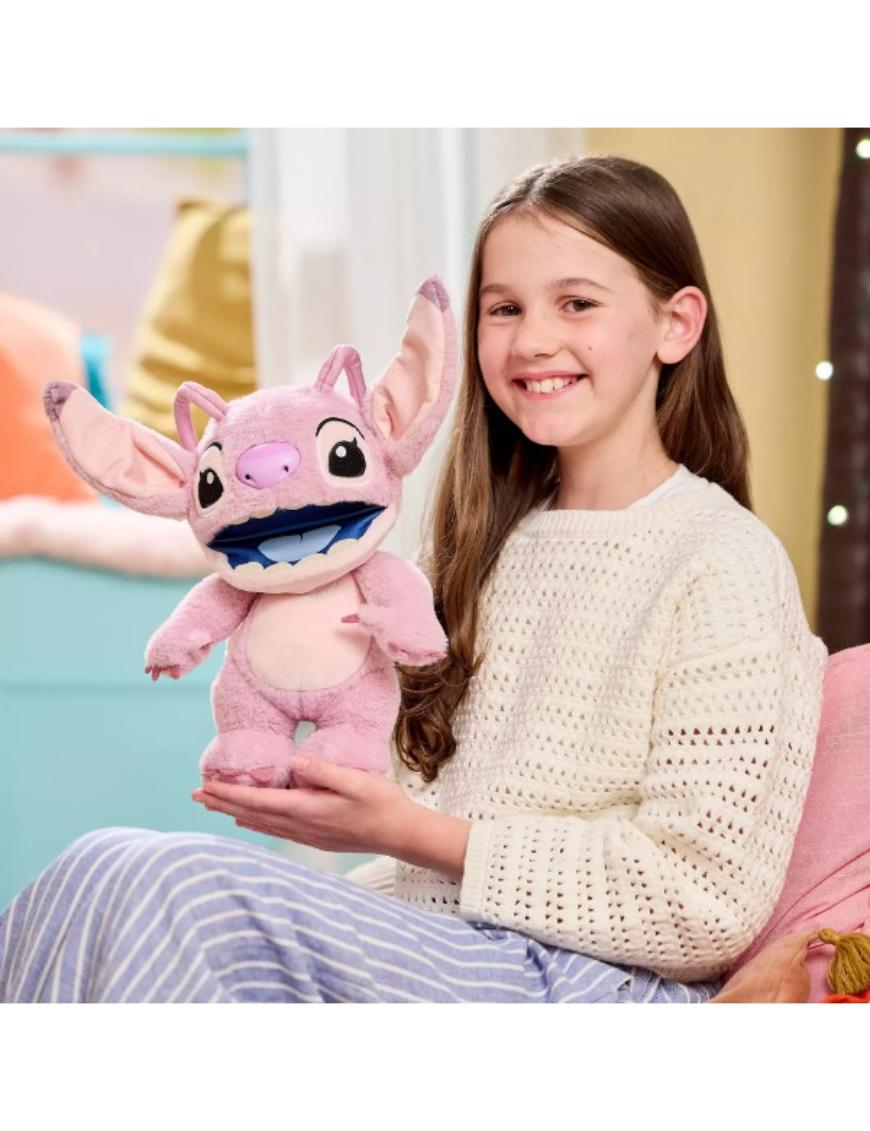 Con más de 50 frases y combinaciones de sonidos, escucha a Chatty Angel hablar en su lengua materna, Tantalog, con su encantadora voz alienÃgena. ¡Observa cómo mueve la boca y gira la cabeza, todo mientras responde a tu tacto! Con tecnologÃa avanzada de sincronización labial, cada frase se activa con los movimientos de la boca de Stitch, lo que añade un toque emocionante al juego. Repleto de diversión, puedes mostrar los estados de ánimo de Angel (travieso o gruñón) con solo presionar uno de los 3 botones ubicados dentro de su cabeza. Un tercer botón, fácil de presionar, te permite activar los sonidos de héroe de Angel, donde dirá algunos de sus dichos favoritos relacionados con el experimento 626. ¡Nuestras caracterÃsticas animatrónicas alienÃgenas favoritas, combinadas con encantadores tÃteres, crean una experiencia cautivadora para niños y adultos por igual! Con 30 cm de altura, Chatty Angel tiene el tamaño ideal para abrazos, mimos y un sinfÃn de aventuras imaginativas. Su diseño suave y tierno lo convierte en un amigo entrañable que los niños adorarán. Desbloquea funciones especiales únicas y un nuevo mundo de interacción al combinar a Chatty Stitch con Chatty Angel (se vende por separado). Ambos comparten estados de ánimo, charlan entre sà e interactúan como ningún otro Puppetronic.